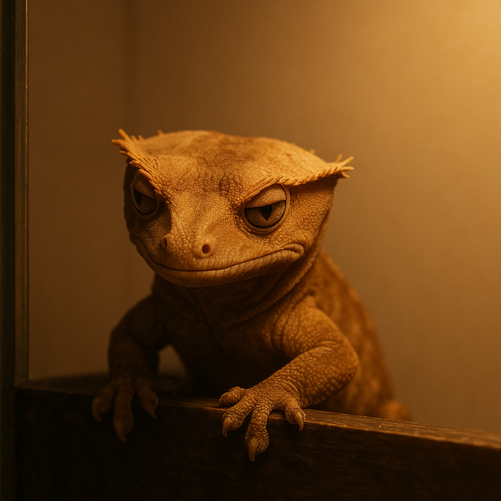 한쪽 구석, 그 자리 그대로… 오늘도 멍하니 허공을 응시 중인 나의 크레스티드 게코.